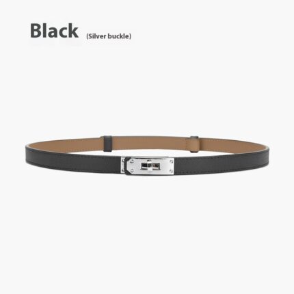 Retro Women’s Leather Thin Belt – Vintage Waist Accessory with Gold & Silver Buckles