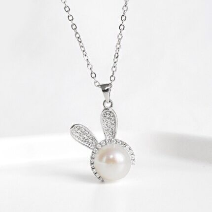 Luxury Rabbit & Pearl Jewelry – Elegant Silver Necklace & Earrings $18.89