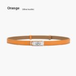 Home Clothing Accessories Retro Women’s Leather Thin Belt – Vintage Waist Accessory with Gold & Silver Buckles