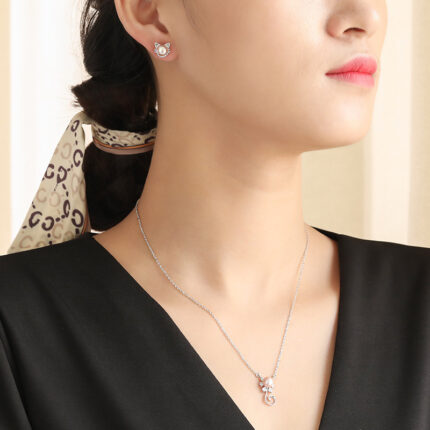 Freshwater Pearl Cat Pendant Jewelry Set – 925 Sterling Silver Necklace & Earrings