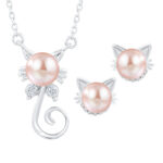 Home Clothing Accessories Freshwater Pearl Cat Pendant Jewelry Set – 925 Sterling Silver Necklace & Earrings
